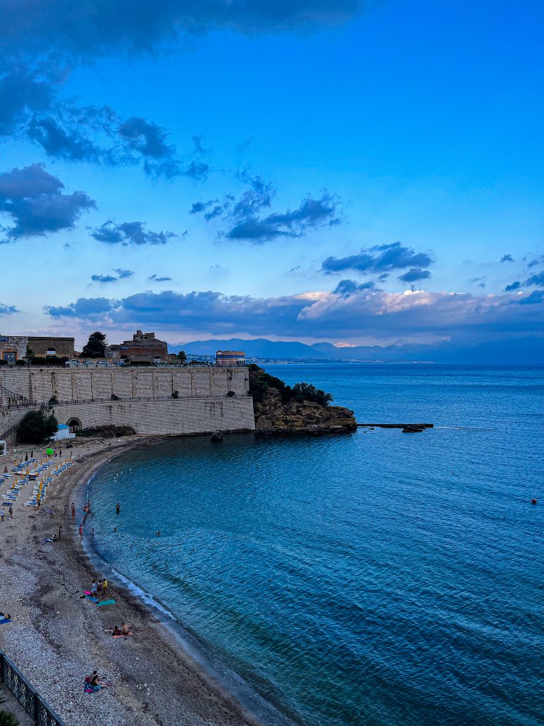 Sur la droite du port il y a une crique aux eaux limpides (attention à la chute, ça glisse) et le centre ville aux murs blanc vous rappellera la Grèce.